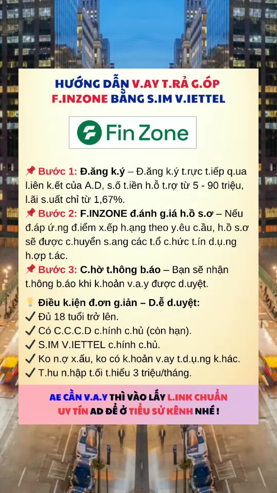 ในการยืม Finzone งวดด้วย Viettel Sim คุณต้องปฏิบัติตามเงื่อนไขดังต่อไปนี้: